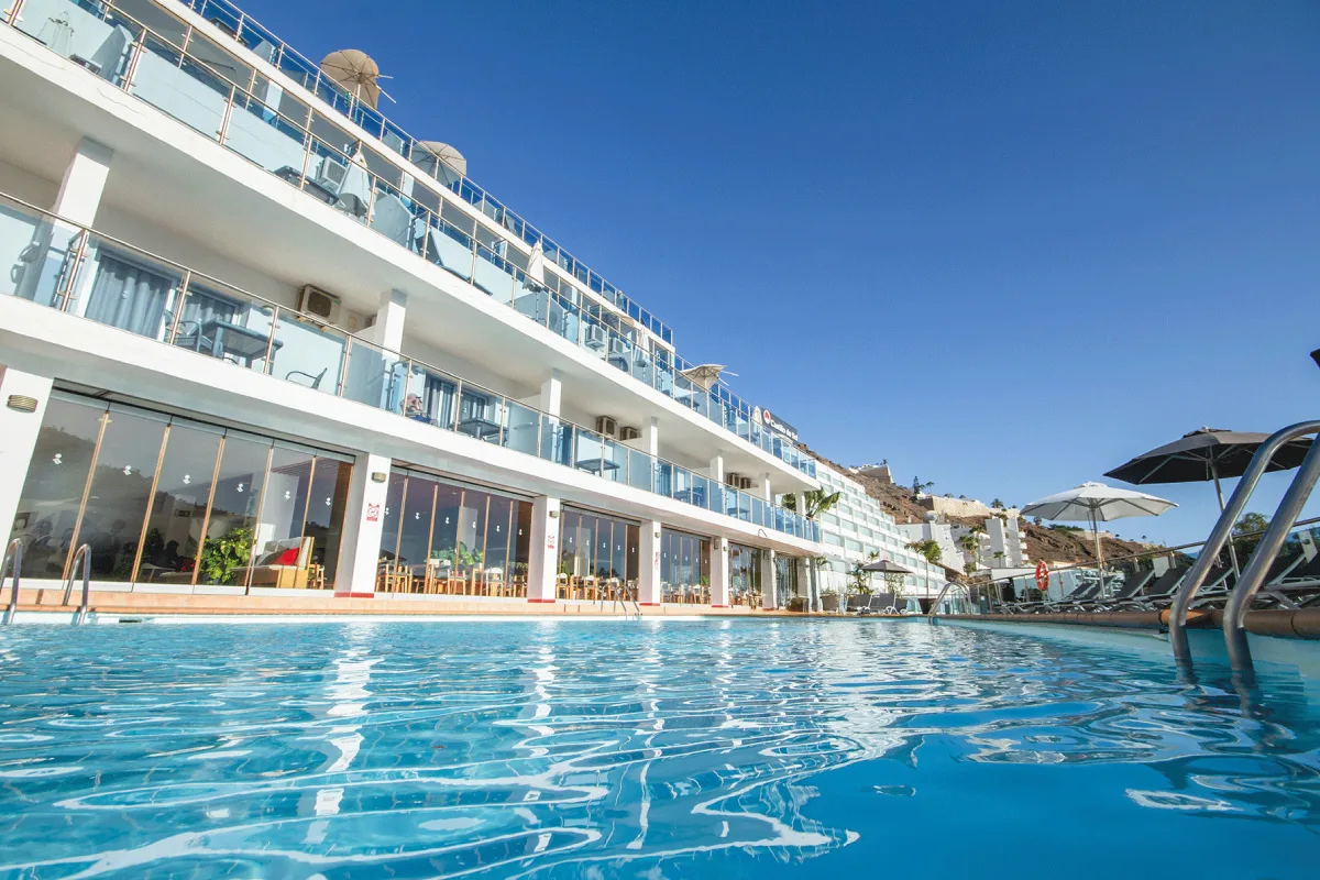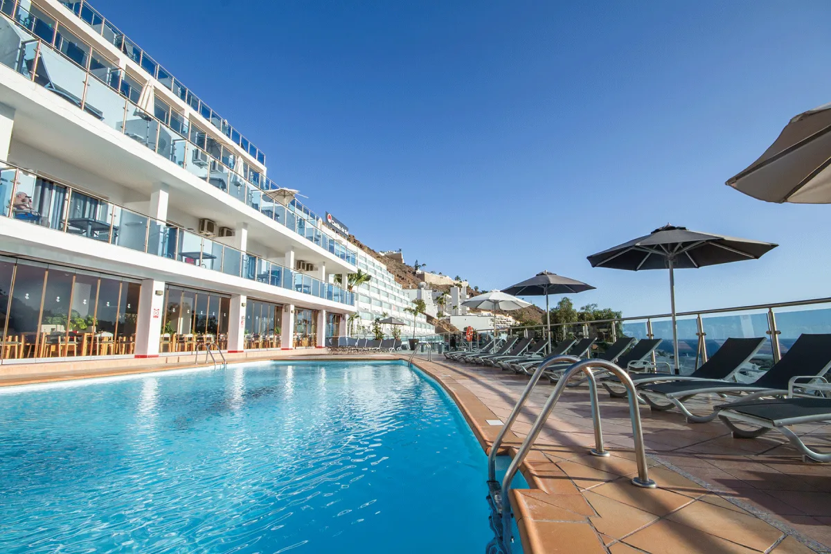 Das Hotel liegt im beliebten Ferienort Puerto Rico. Es verfügt über große Terrassen mit herrlichem Blick auf das Tal von Puerto Rico und das Meer.