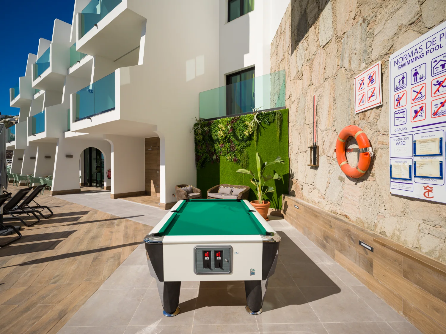 Con 43 alojamientos amplios, encontrarás apartamentos de uno o dos dormitorios, todos con cocina equipada, salón, baño y terraza o balcón amueblado. Algunos ofrecen vistas al mar o a la piscina, creando el ambiente perfecto para descansar.