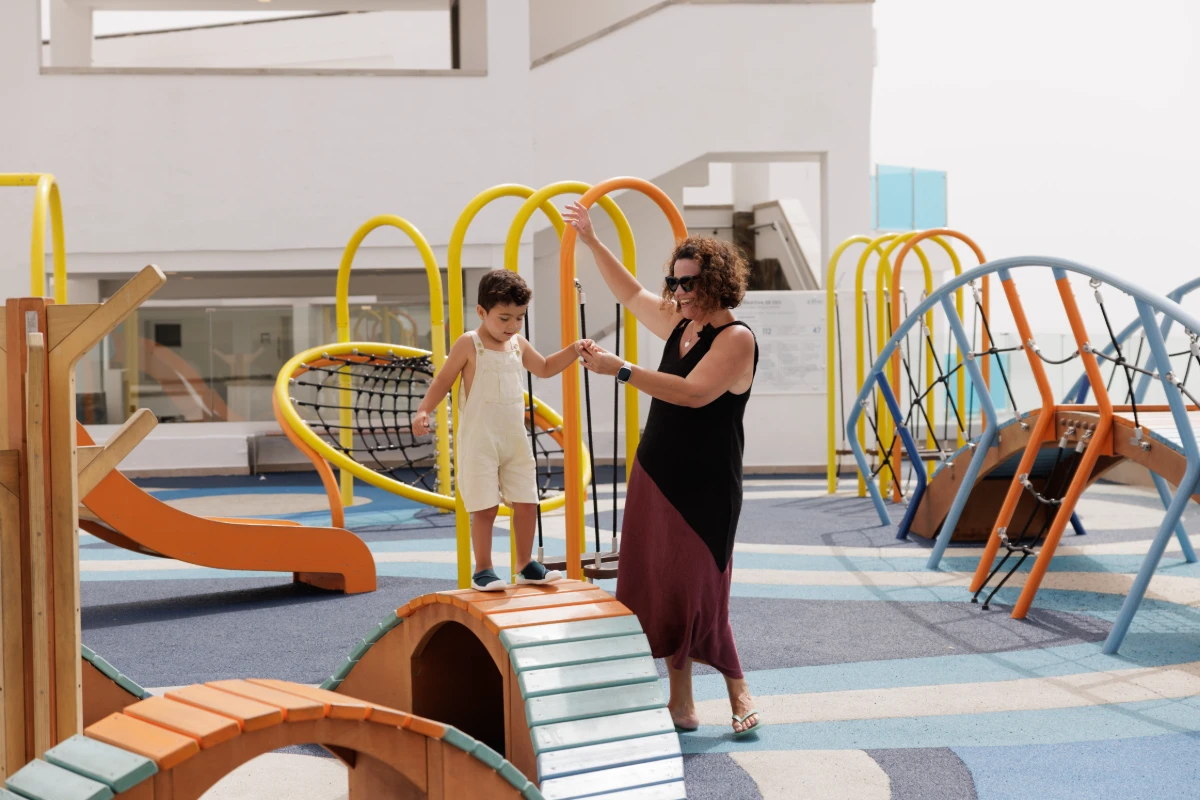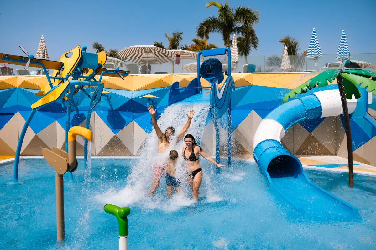 Prepárate para unas vacaciones a lo grande: cinco piscinas, gran solárium, cancha multideportiva, spa exterior, gimnasio, restaurantes, área infantil… Instalaciones y servicios para todas las edades. Además, el acceso al gimnasio y spa exterior es gratuito e ilimitado para clientes alojados. Pero ojo, aún hay más. Destaca la zona exclusiva para adultos, perfecta para relajarse y disfrutar de las espectaculares vistas al mar y el área de splash con toboganes: la diversión para los más pequeños está garantizada. Además, el programa de animación, incluye shows profesionales y música en vivo para que los adultos también disfruten como niños/as.