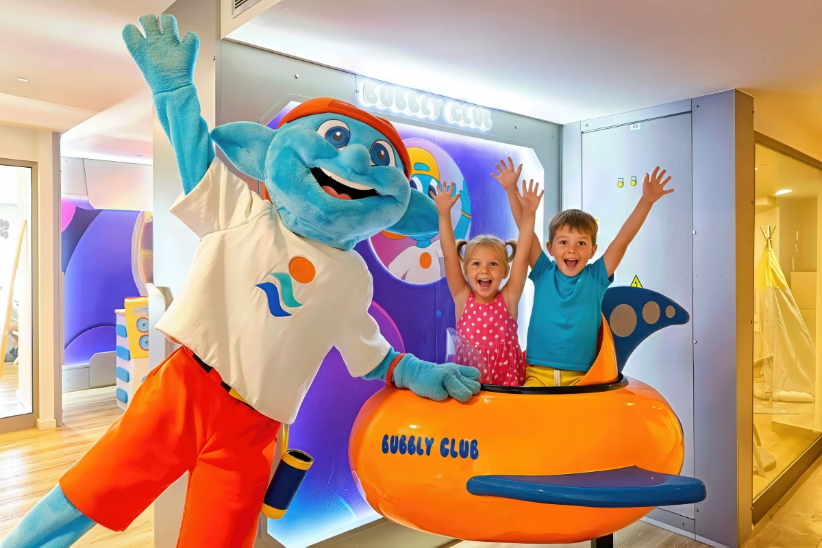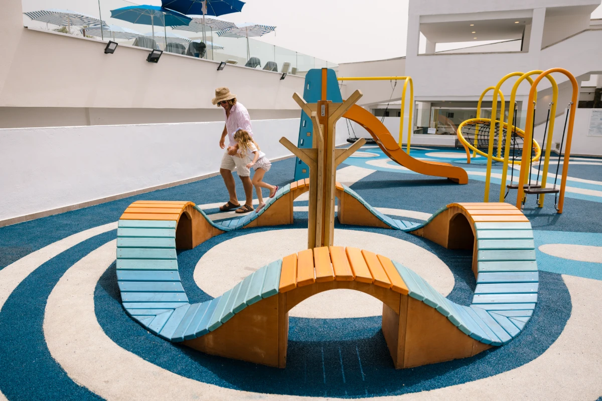 La completa selección de servicios e instalaciones hacen de Servatur Puerto Azul un hotel perfecto para cada miembro de la familia. Los más peques podrán pasar el día disfrutando en nuestro parque acuático “Aquaviva” con piscina splash y toboganes, (alt. mín. 1,20 m), sigue la diversión en el parque infantil “Family Run Park” y disfruta de diferentes actividades en el “Bubbly Club”.