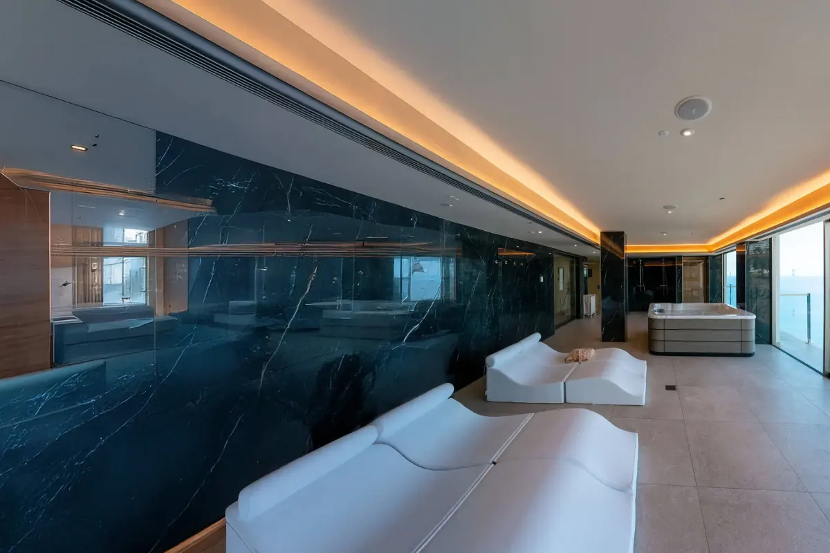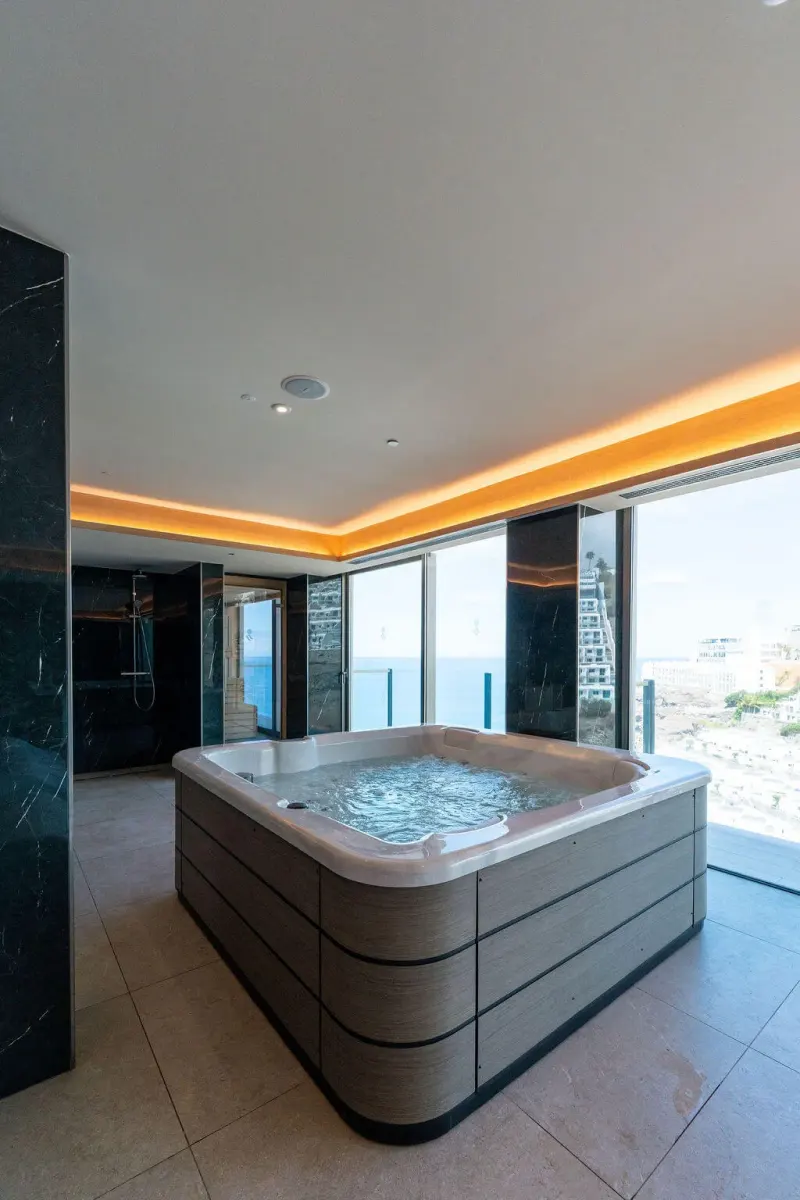 Disfruta de una experiencia relajante en la bañera de hidromasaje con capacidad para 4 personas, duchas revitalizantes y una sauna con vistas privilegiadas del entorno. Un lugar ideal para desconectar y recargar energías durante tus vacaciones.